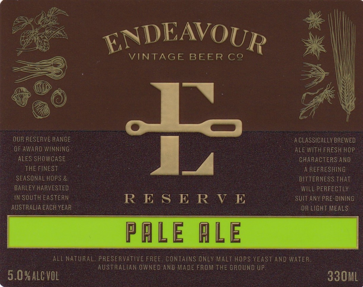 Class 1 Hally Labels, Australia Endeavour Reserve Pale Ale |