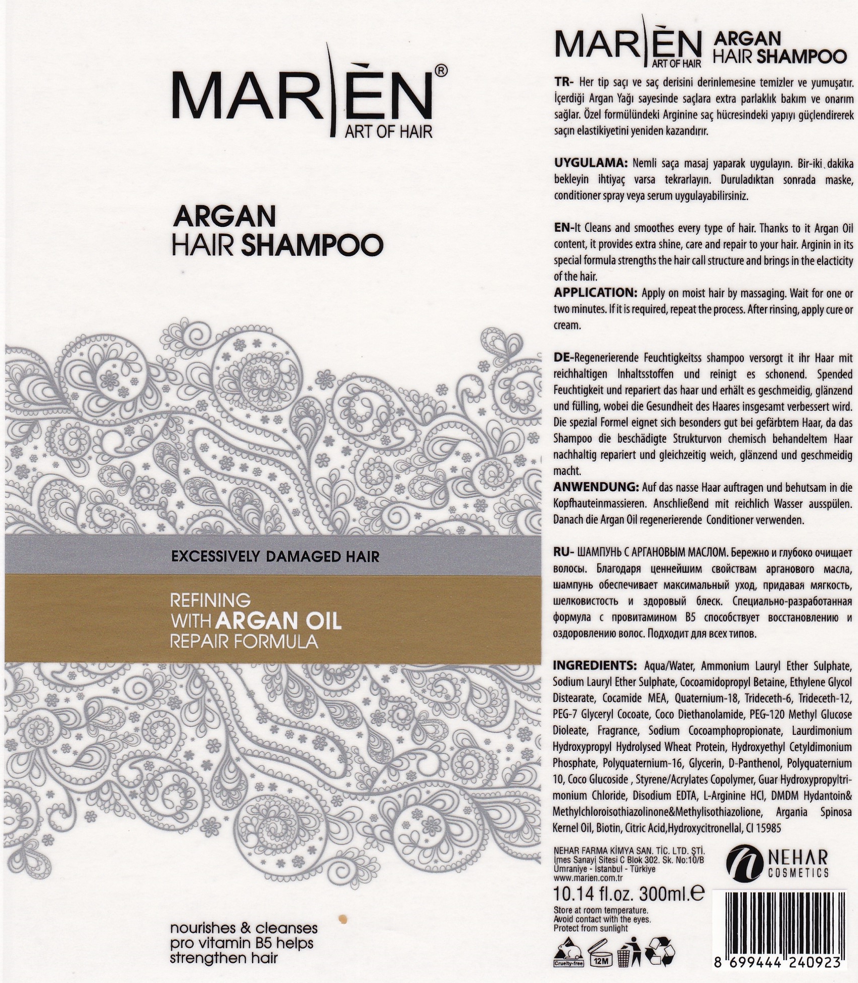 Class 19 Ciftsan Etiket, Turkey Marien Argan Hair Shampoo |