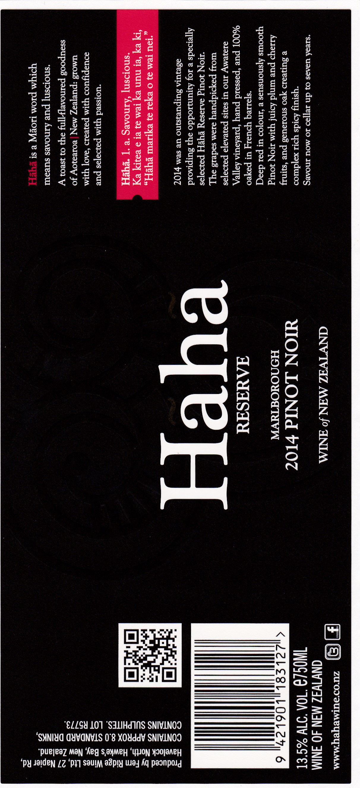 Class 4 Rapid Labels, New Zealand Haha Reserve Pinot Noir 2014 |